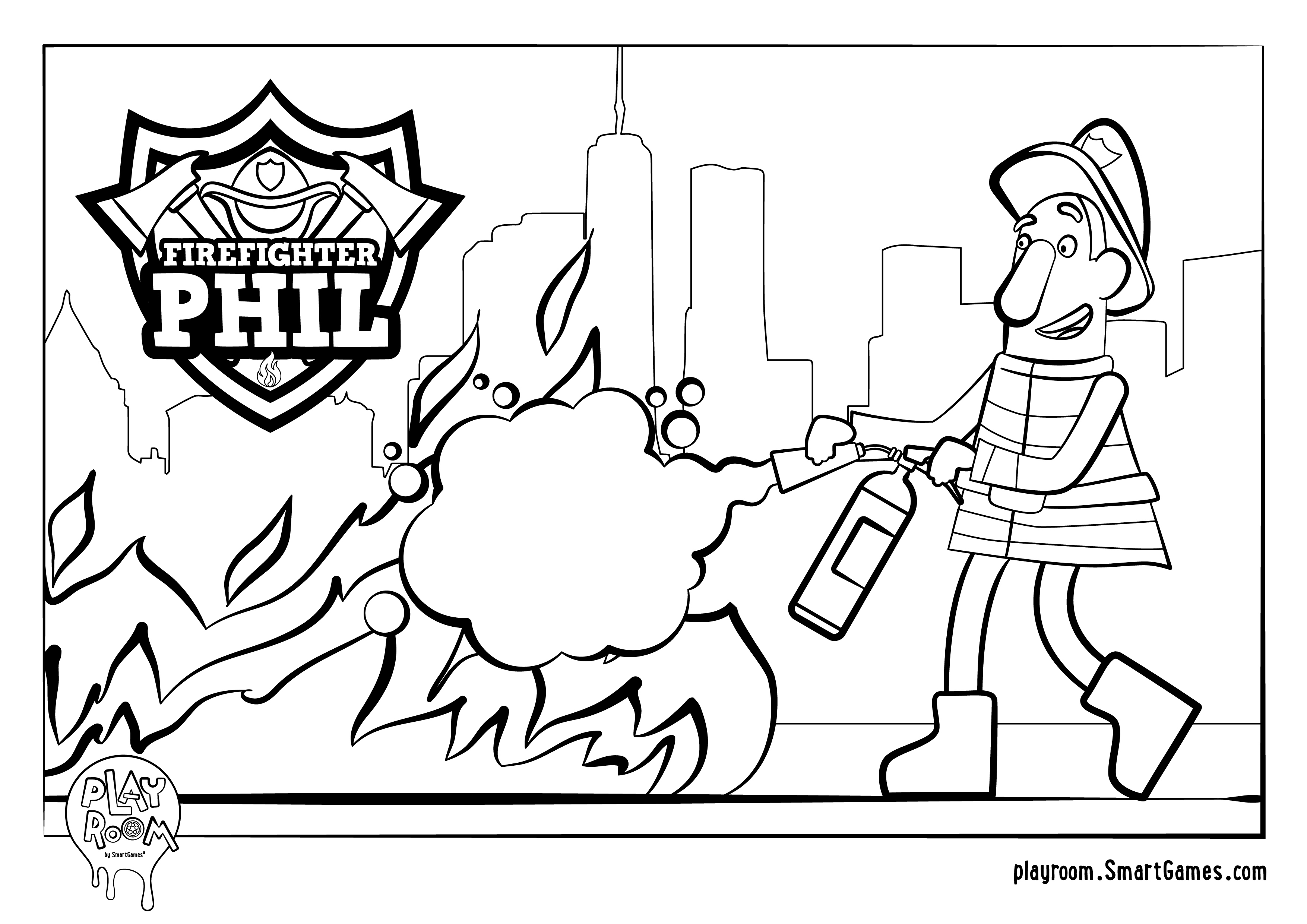 Colouring page for Firefighter Phil